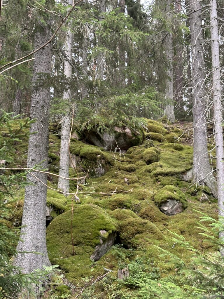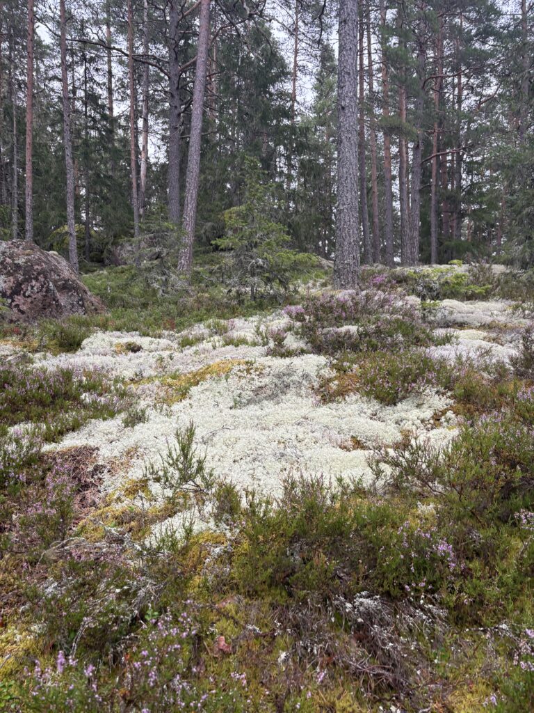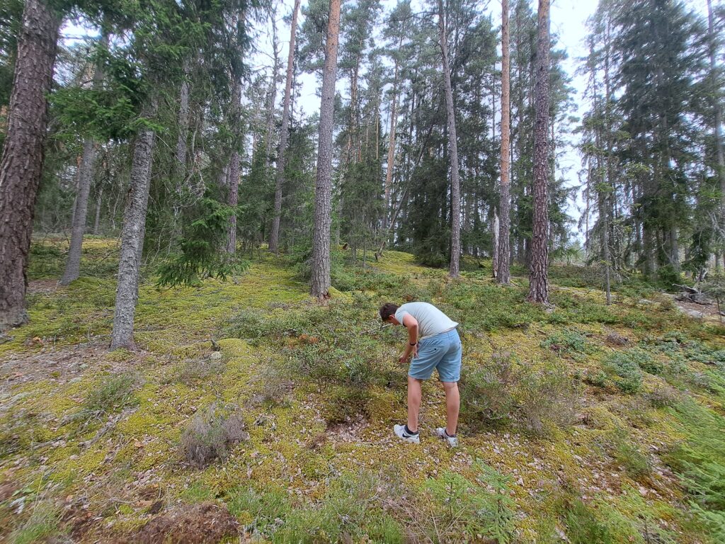 Wir halten dann an einem kleinen Waldweg an, weil es dort sehr schön aussieht und wollen ein bisschen spazieren gehen. Schon bald sehen wir, dass es hier haufenweise Preiselbeeren gibt, und fangen an, sie zu pflücken. Am Tag davor haben wir extra nachgelesen, dass es keine giftigen Verwechslungen gibt, und abgekocht stellt der Fuchsbandwurm auch keine Gefahr mehr dar. Wir finden einen großen Ameisenhügel, und beobachten die fleißigen Arbeiter. Dann fahren wir nach Lönneberga weiter.