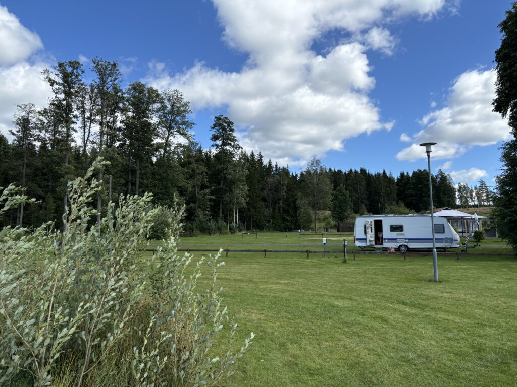 Heute heißt es Abschied nehmen aus der Welt von Astrid Lindgren rund um Mariannelund und Lönneberga. Nach dem Frühstück packen wir alles zusammen, verlassen den schönen Campingplatz in Hultsfred und fahren weiter in Richtung Eksjö. Diese kleine Stadt haben wir als Tipp aus der Fernsehsendung WDR Wunderschön erhalten, und es soll eine sehr schöne Stadt mit vielen alten Holzhäusern sein. Wir fahren die knappe Stunde von Hultsfred bis nach Eksjö und planen eigentlich, noch bevor wir zum Campingplatz fahren, dort zu halten und uns die Stadt anzusehen. Vor Ort ist es jedoch etwas schwierig, einen Parkplatz zu finden, wo wir samt Molly parken können. Deshalb entscheiden wir uns, die 20 Minuten bis zu unserem Campingplatz etwas nördlich von Eksjö an einem See nahe Aneby zu fahren, Målsånna Camping.