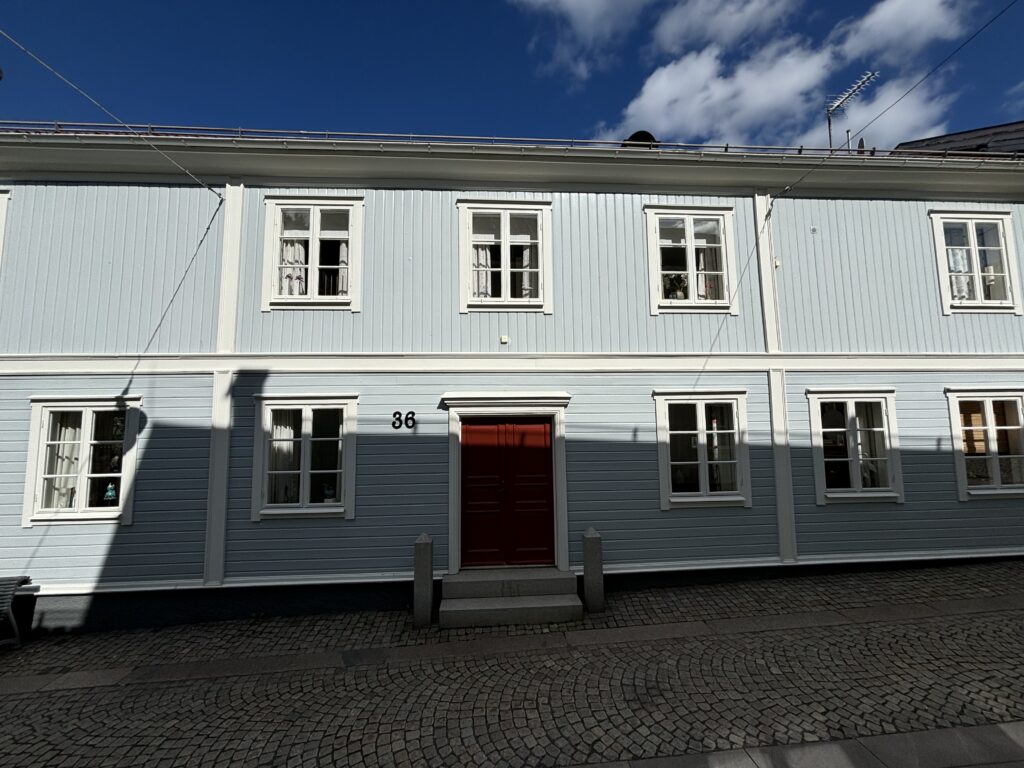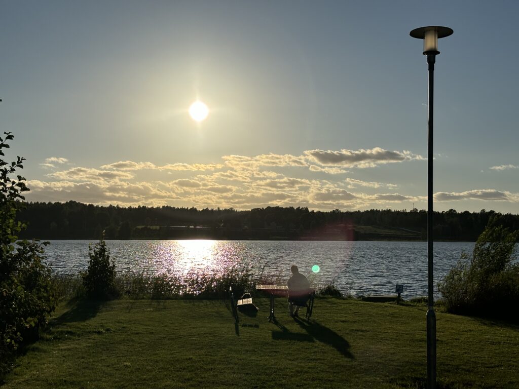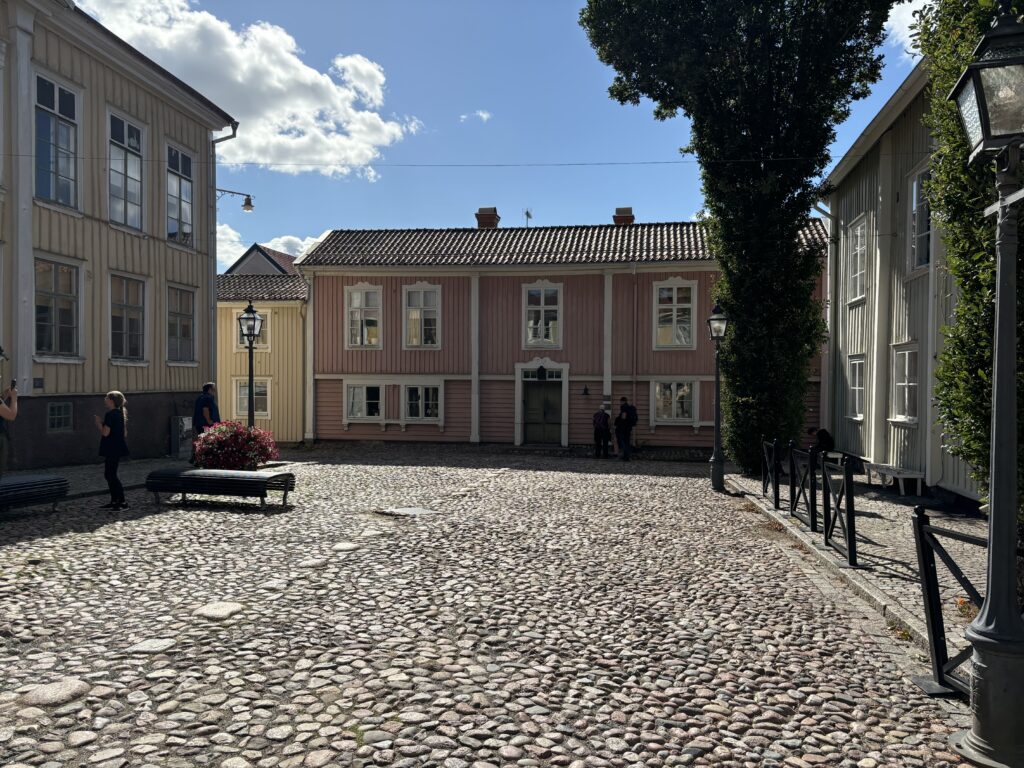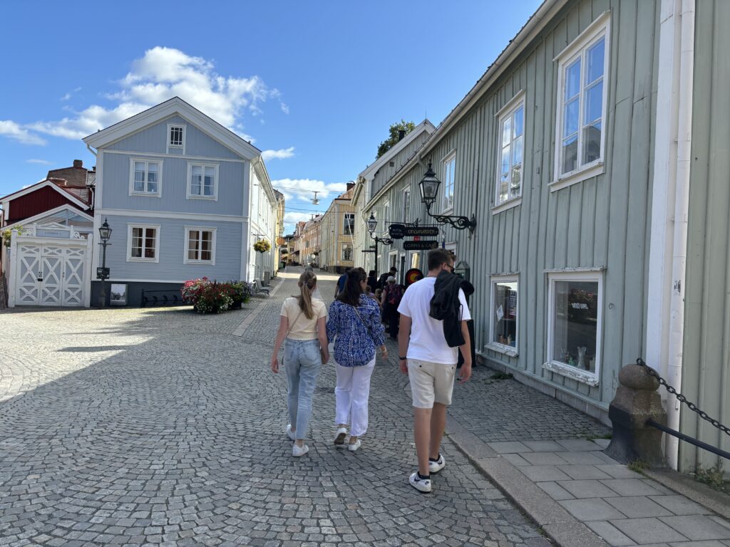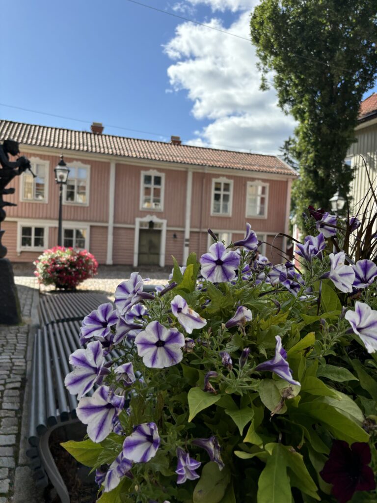 Wir möchten gerne Kaffee trinken und ein Stück schwedische Leckerei essen, aber interessanterweise schließt Lennarts Café, wie so viele andere Cafés in Schweden, schon um 16 Uhr, und wir sind erst kurz vor vier dort. Daher nehmen wir einige Leckereien zum Mitnehmen und setzen uns auf dem großen Platz an einen der bereitstehenden Tische. Nachdem wir diese genossen haben, schlendern wir noch durch eine andere Straße. Linus schaut, wie immer, nach Immobilien in Schweden, was man denn hier so kaufen könnte, und danach fahren wir zurück.
